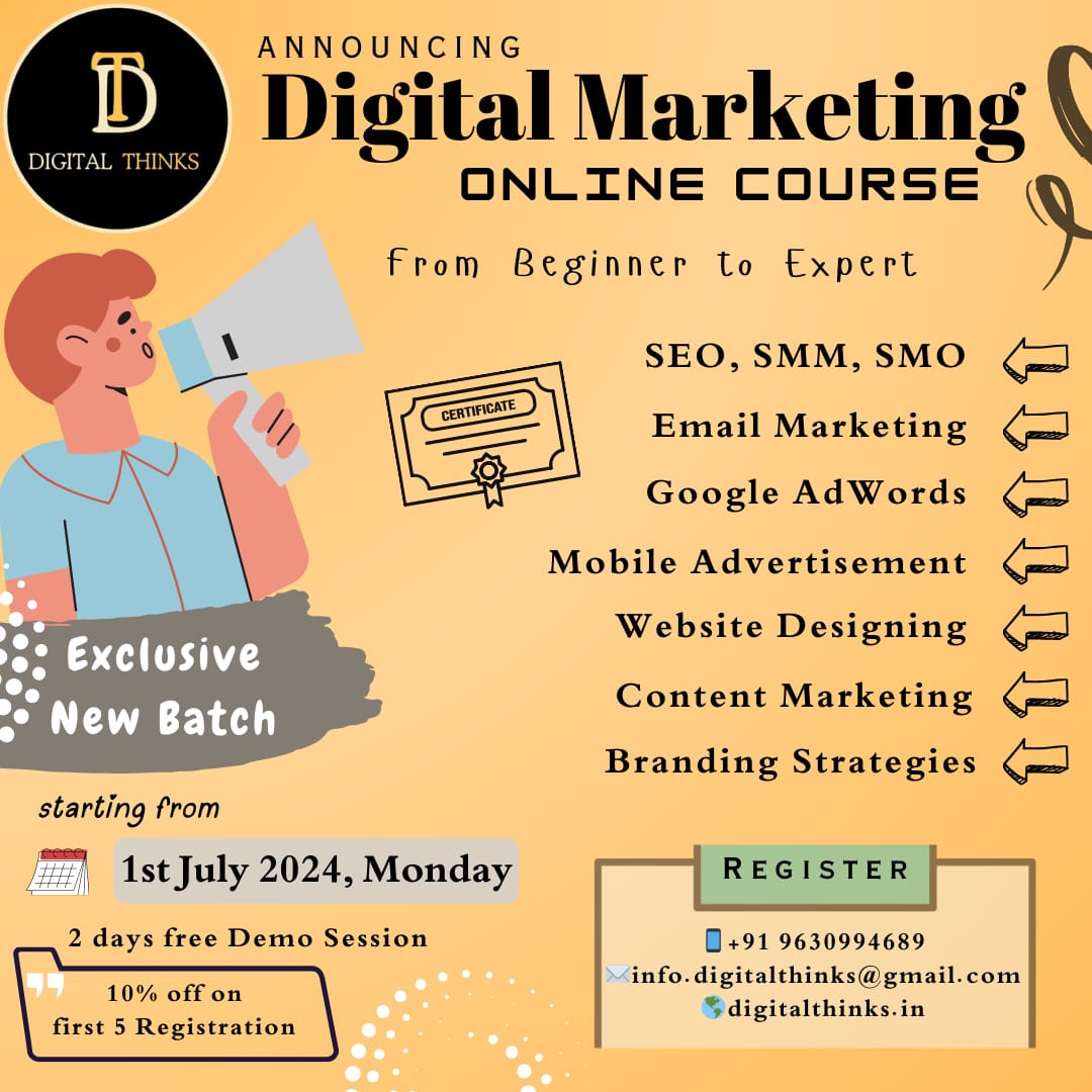 DigitalThinks Web Solutions is announcing their new online batches of Digital Marketing course.